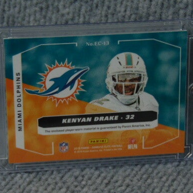 Kenyan Drake game worn jersey patch from Panini Donruss Elite. This is a fun card for people who are just starting out. You get a piece of authentic history at a reasonable price.